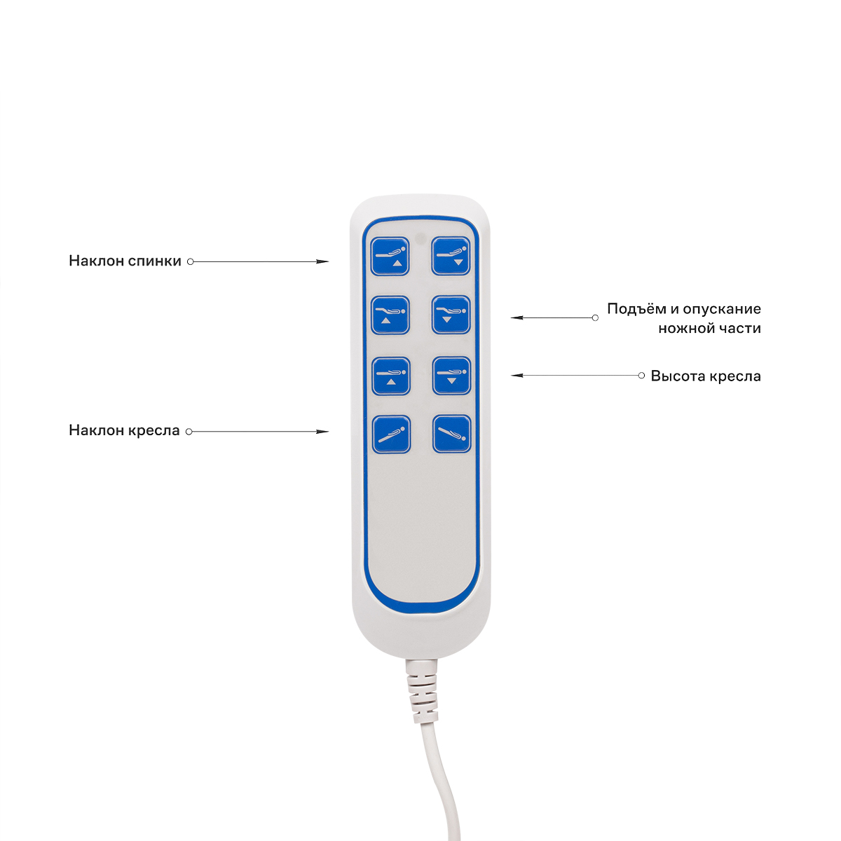 • Регулировка угла наклона кресла: электропривод