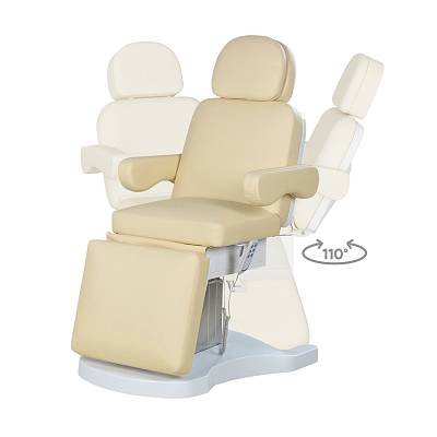 Три электромотора позволяют быстро и без усилий настроить высоту, угол наклона спинки и икроножной секции, а удобный поворотный механизм, позволяет регулировать поворот кресла под удобное положение.