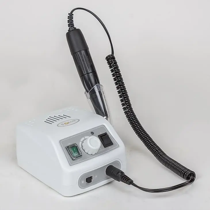 Комплектация: блок питания, держатель для наконечника, рукоять с микродвигателем, электрический шнур, инструкция, сумка, ножная педаль.