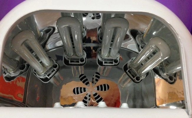 Удобные сменные лампочки – располагаются в верхней части корпуса под разным углом, обеспечивают равномерное высыхание геля. Мощность каждой лампочки по 9 Вт.