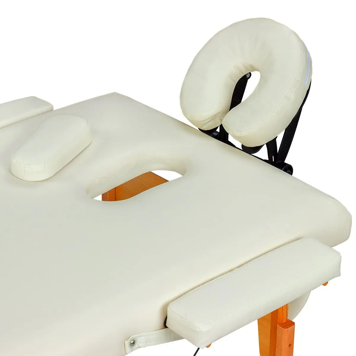 Высота массажного стола регулируется, что позволит мастеру подобрать оптимальное положение для проведения процедур. Съемный подголовник поможет увеличить длину кушетки. Для хранения и удобной транспортировки массажное оборудование легко складывается до размеров чемодана.