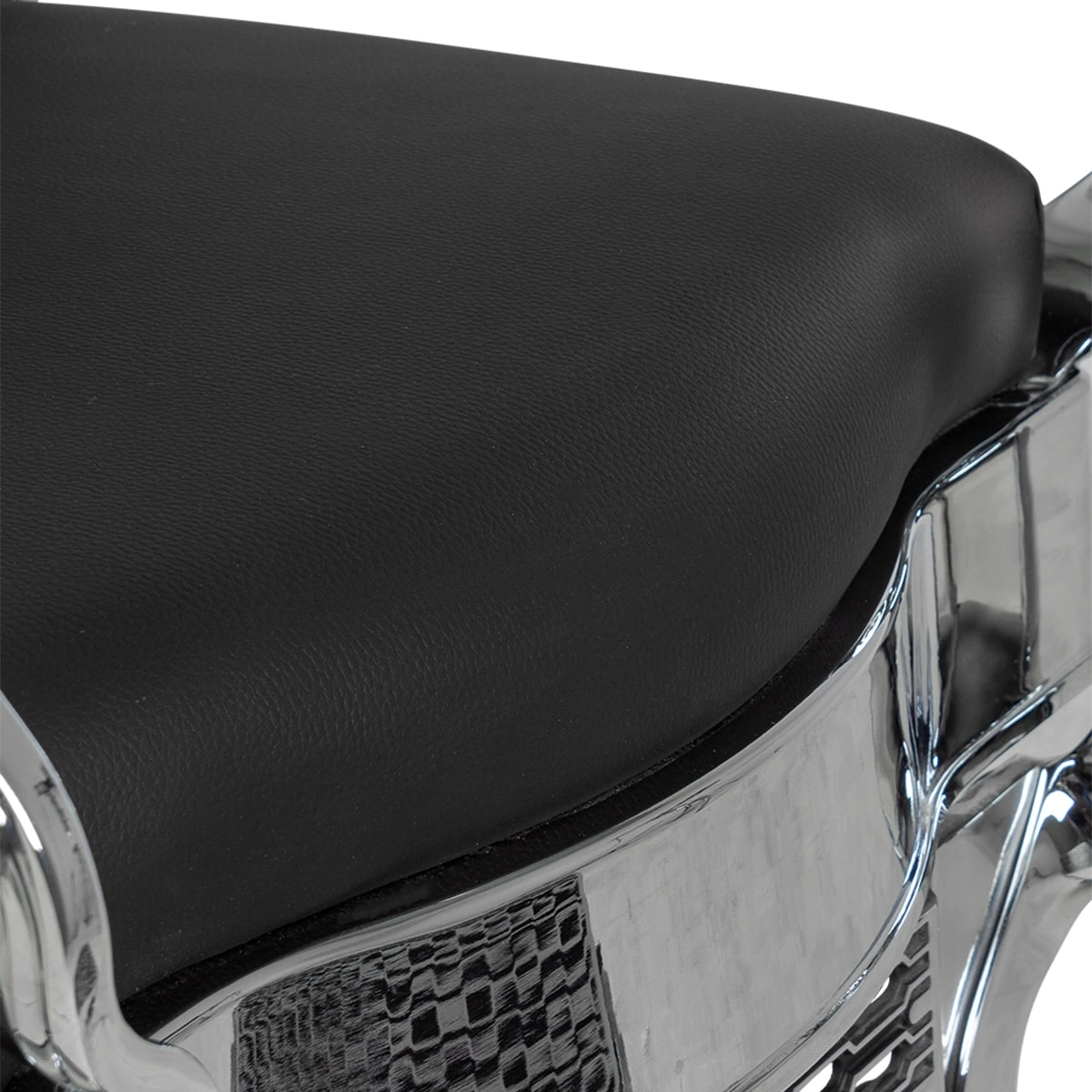 Удобное сидение оснащено широкими подлокотниками для комфорта посетителей. Для поддержания шеи и головы клиента в конструкции предусмотрен мягкий подголовник. Практичная подножка не допустит усталости ног клиентов.