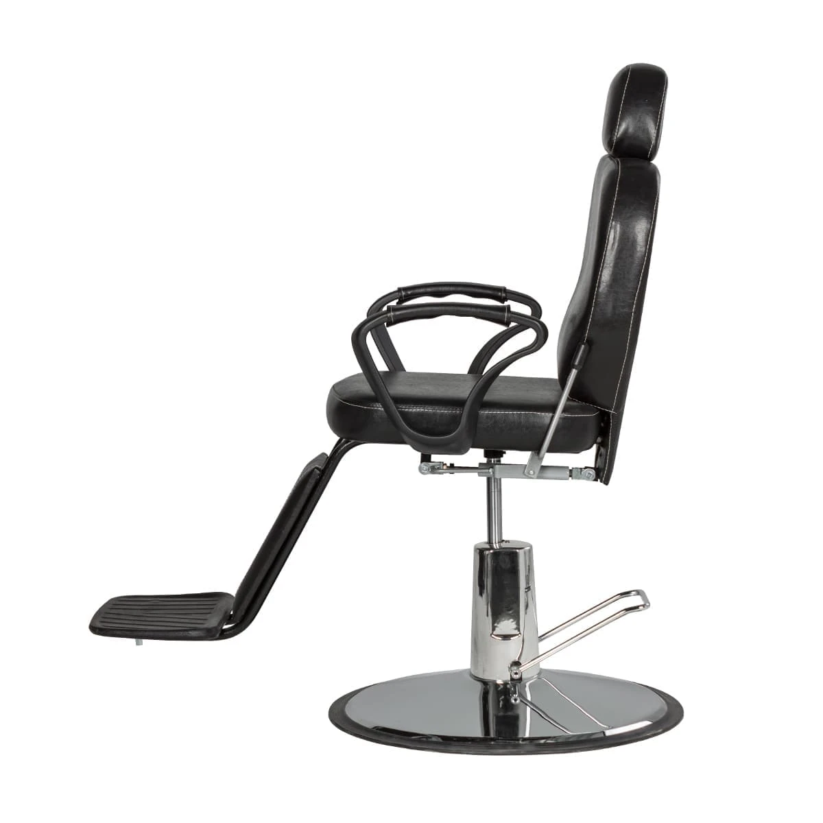 Продуманное дизайнерское решение позволяет оказывать услуги по уходу за волосами и бородой, а также делает кресло barber стильной составляющей интерьера. Для удобного расположения клиента любого роста предусмотрена подножка и выдвижной подголовник. По бокам сиденья установлены эргономичные подлокотники из прочного черного пластика. Подъем кресла осуществляется при помощи надежного гидравлического механизма, а для наклона спинки установлен газ-патрон.