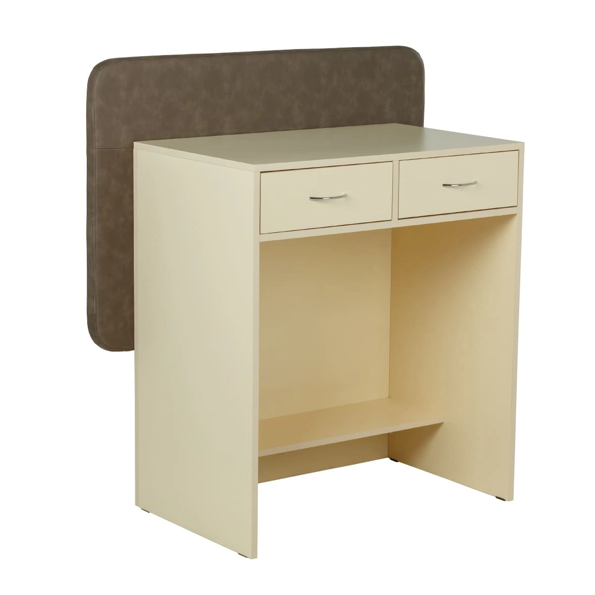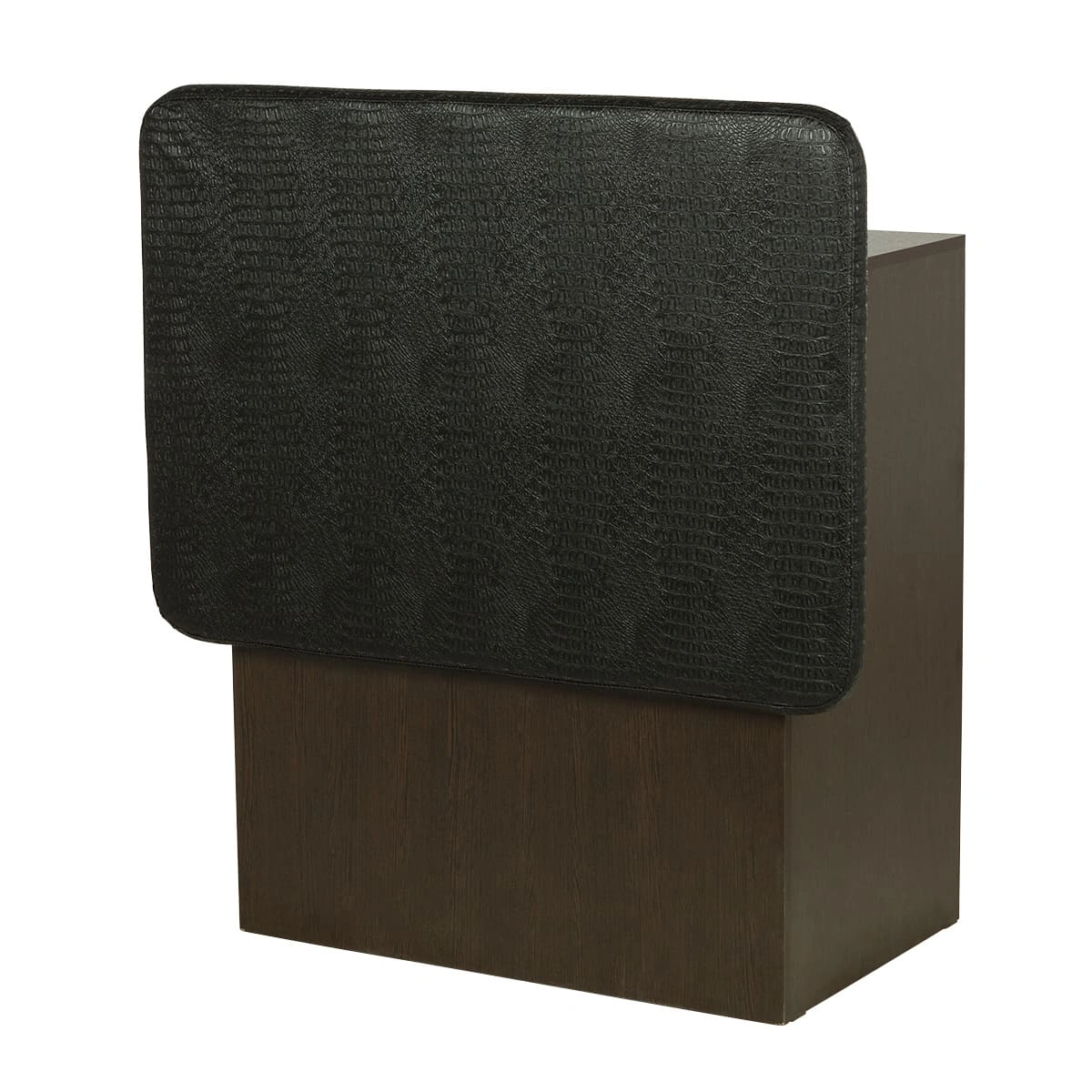 Стойка для администратора представляет собой двухстороннюю конструкцию. Внешняя часть, обращенная к клиенту, установлена выше уровня груди клиента. Благодаря этому посетителю не виден рабочий стол администратора и все, что на нем находится. Со стороны работника салона находится стол, на котором можно сложить необходимые документы, установить ноутбук и телефон. В двух выдвижных ящиках достаточно места для необходимых канцелярских предметов и личных вещей.