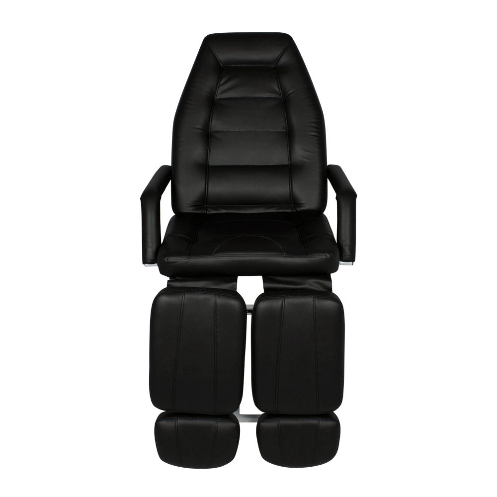 Кресло при необходимости можно разложить до горизонтального положения. Дополнительные подушки для стоп могут выдвигаться, удлиняя размер подножек. Это особенно удобна для посетителей высокого роста. Ножная часть раздельная. Каждая подножка может опускаться до 90 градусов, а подниматься на высоту до 1 метра. Регулировка высоты позволит мастеру подобрать оптимальное положение для каждого клиента.