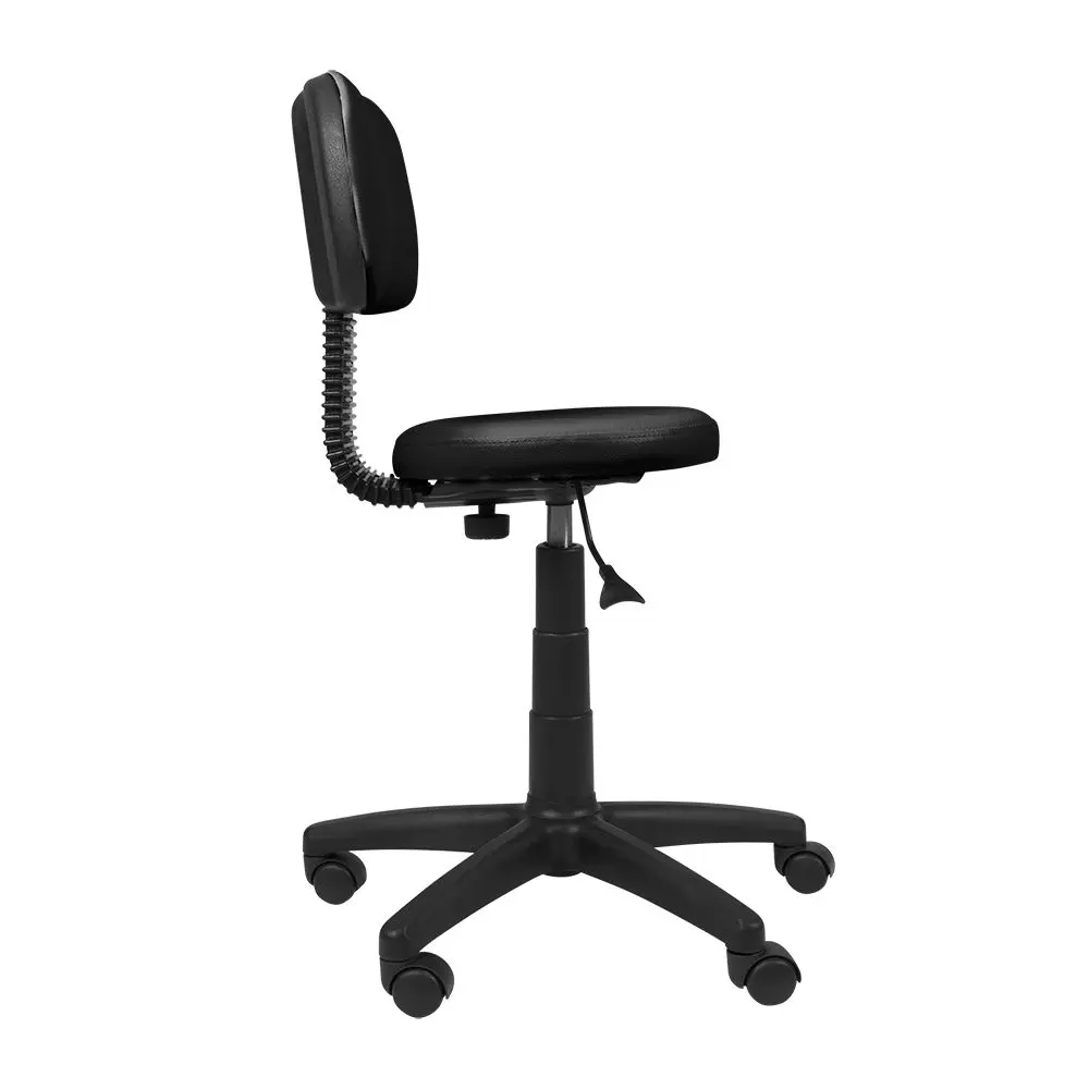 Стул очень устойчив за счёт стального каркаса и пятилучья из прочного пластика. Дополнение вращающимися колёсами делает оснащение манёвренным. Специалист сможет перемещаться по рабочему пространству быстро и легко. Также стул оснащён удобным механизмом регулировки высоты сидения. При помощи пневматики можно без особых усилий изменить высоты посадочного места.