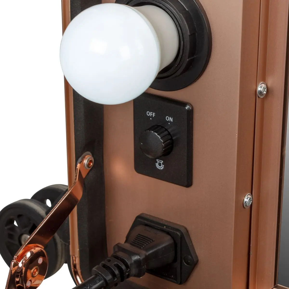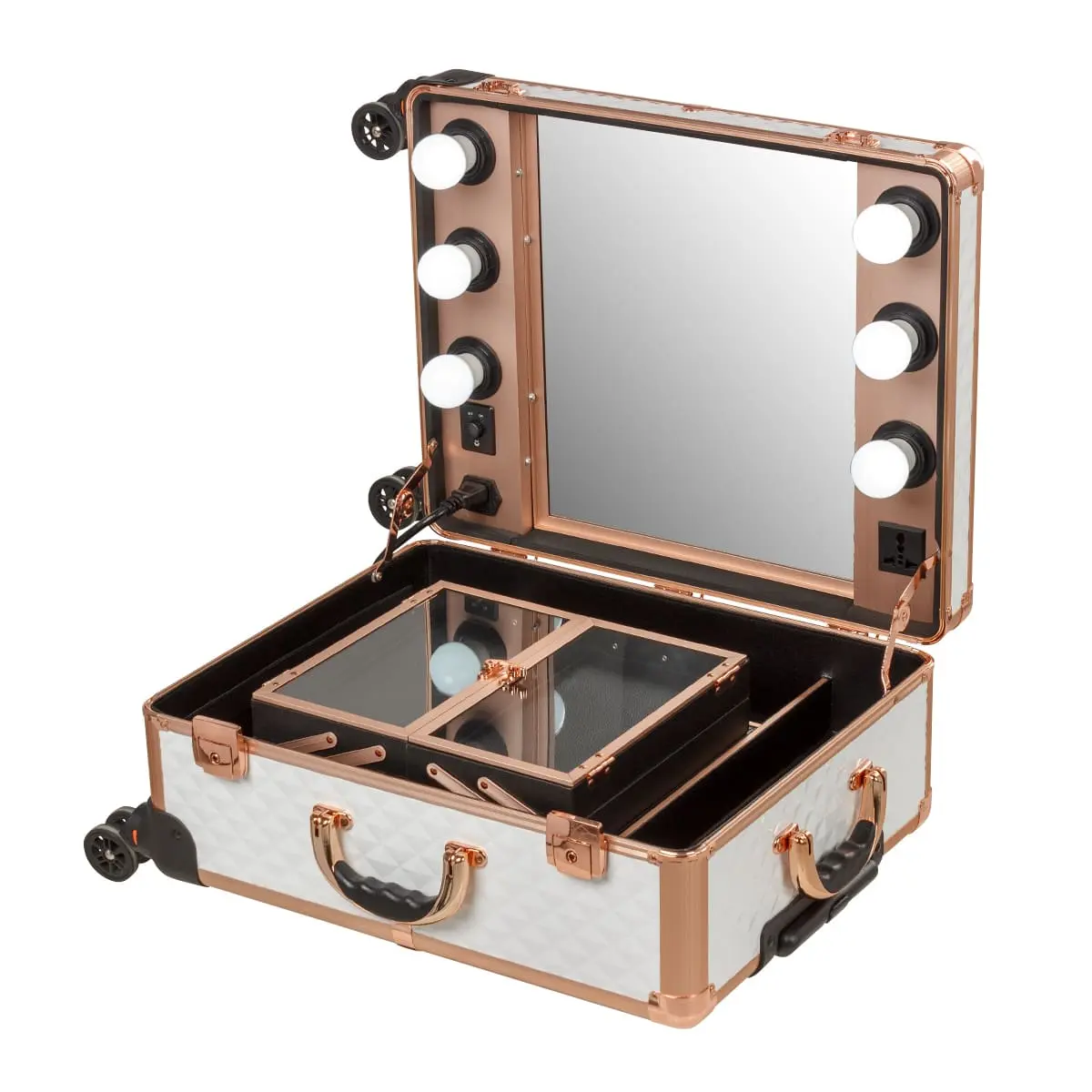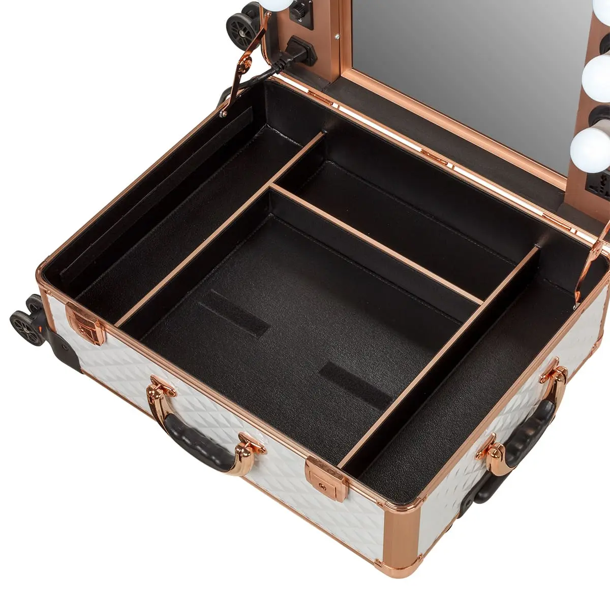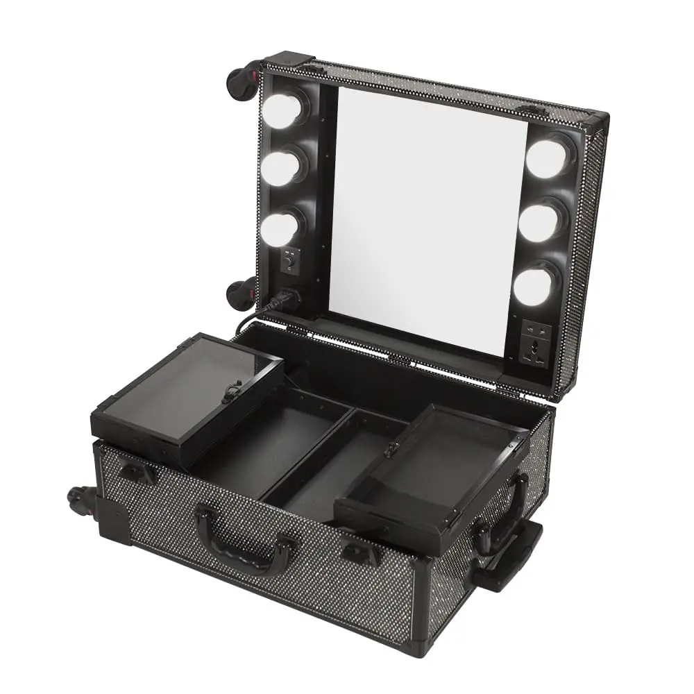Мобильная студия визажиста VZ-58 с лёгкостью поможет организовать рабочую зону в любом салоне красоты или на выездной работе. Компактный кейс можно взять с собой куда угодно. Чемоданчик оснащён вращающимися колёсами и удобной телескопической ручкой. Мастеру не придётся носить тяжёлые кейсы с косметикой и инструментом. Такая студия идеальна для мастеров, кто большую часть времени проводит в разъездах.