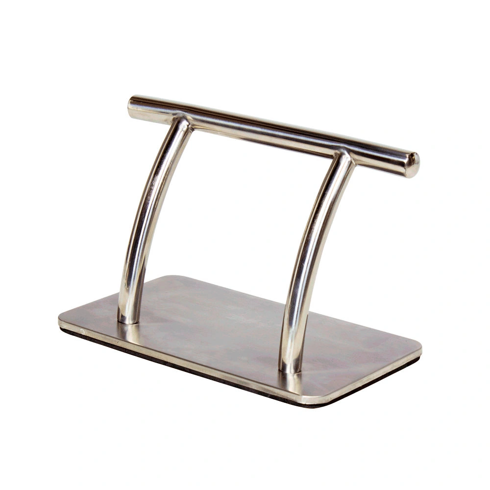 Для производства подставки применяется прочный хромированный металл, устойчив к воздействию воды и дезинфицирующих средств. Защитное хромированное покрытие предотвращает образование коррозии и не боится механического воздействия, благодаря чему эта подставка прочная и долговечная. Устойчивость данного аксессуара обеспечивает широкая площадка из хромированного металла. Она имеет прямоугольную форму с закругленными углами. Нижняя часть площадки оснащена специальной пластиной для предотвращения скольжения подставки и защиты напольного покрытия от повреждений. Подставка под ноги 03 хром от магазина МЭДИСОН оптимально сочетается с парикмахерскими креслами и оборудованием, у которого присутствуют элементы из хромированного металла. Подставка имеет удобные для клиента размеры: высота 210 мм / ширина 320 мм