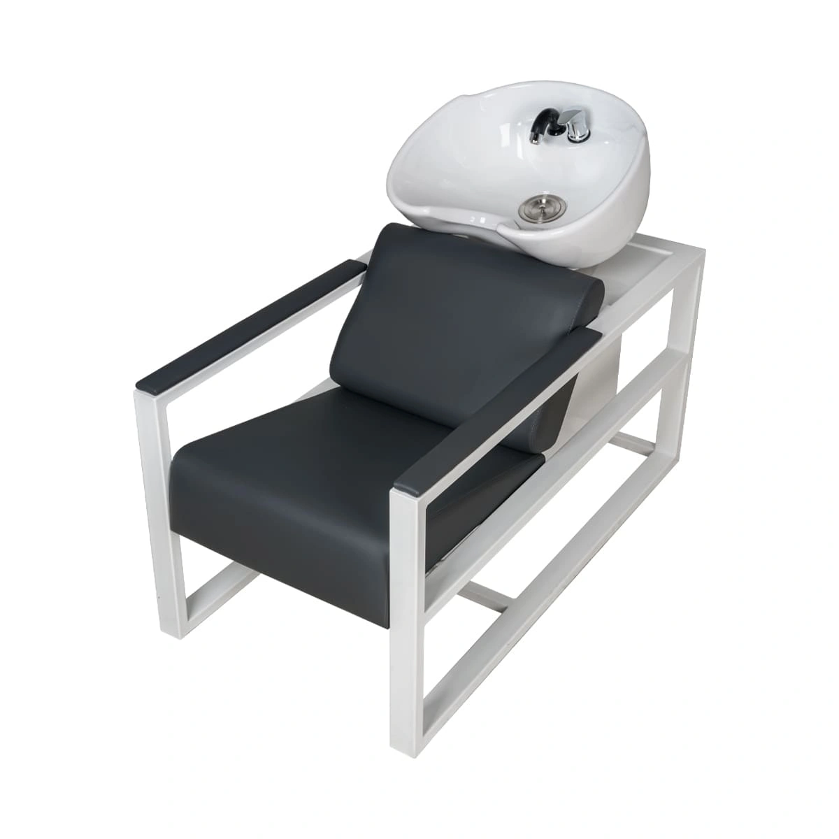 Парикмахерская мойка Дуглас – это профессиональное оборудование с отличными функциональными возможностями. Она разработана для бьюти салонов и парикмахерских высокого уровня. Данная модель оснащена красивой глубокой раковиной из черной или белой керамики на выбор, которая идеально подходит для мытья длинных и средних волос. В комплектации также предусмотрен набор сантехники: смеситель, удобный душ, слив. Каркас мойки изготовлен из металла со сверхпрочным порошковым покрытием черного цвета.