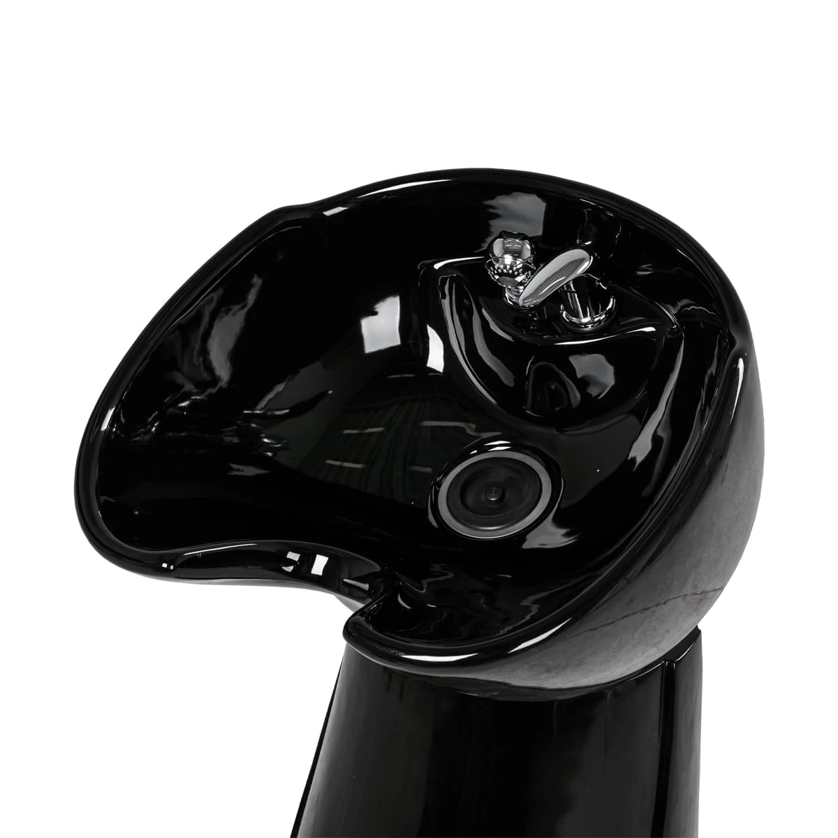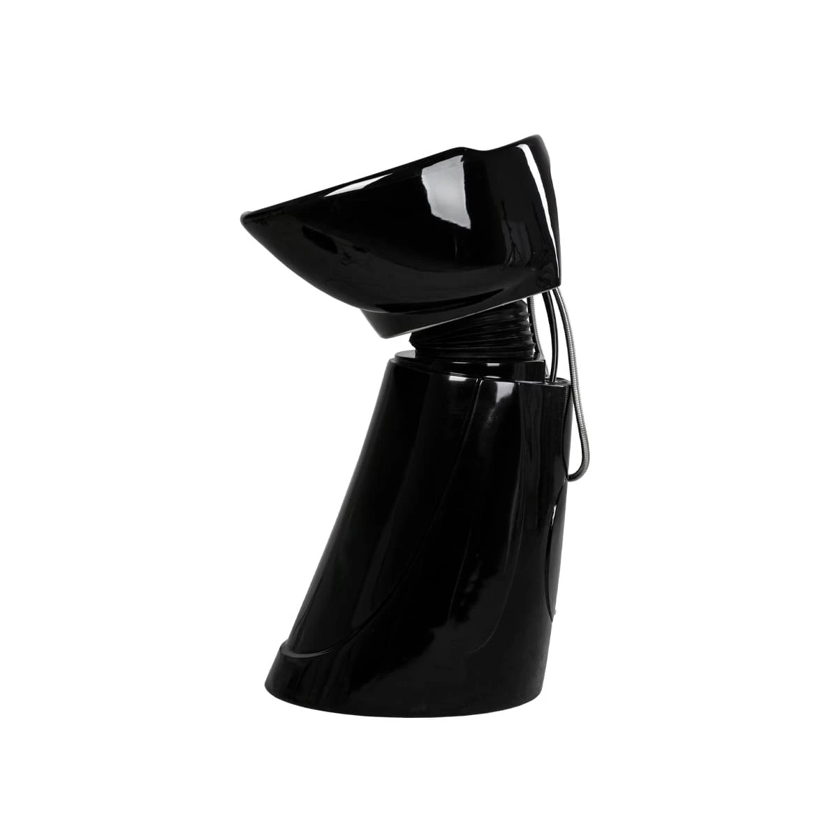 Основание парикмахерской мойки изготовлено из усиленного ударопрочного пластика черного цвета. Данный материал не боится воздействия воды и дезинфицирующих средств, не требует особого ухода. Эргономичная форма основания с расширением в нижней части обеспечивает оборудованию устойчивость и надежность. Установить мойку можно в помещении с любой площадью, так как она имеет удобные размеры.