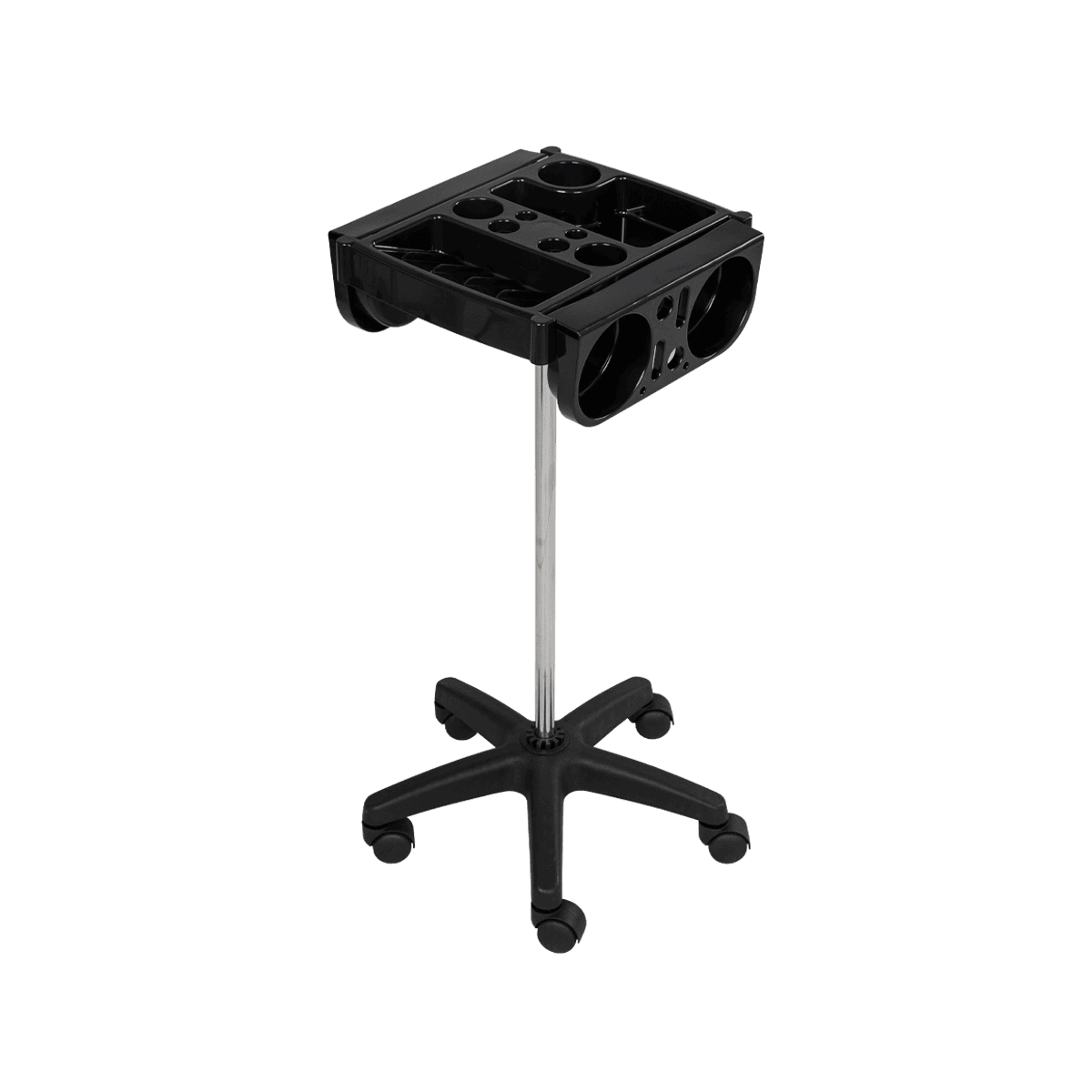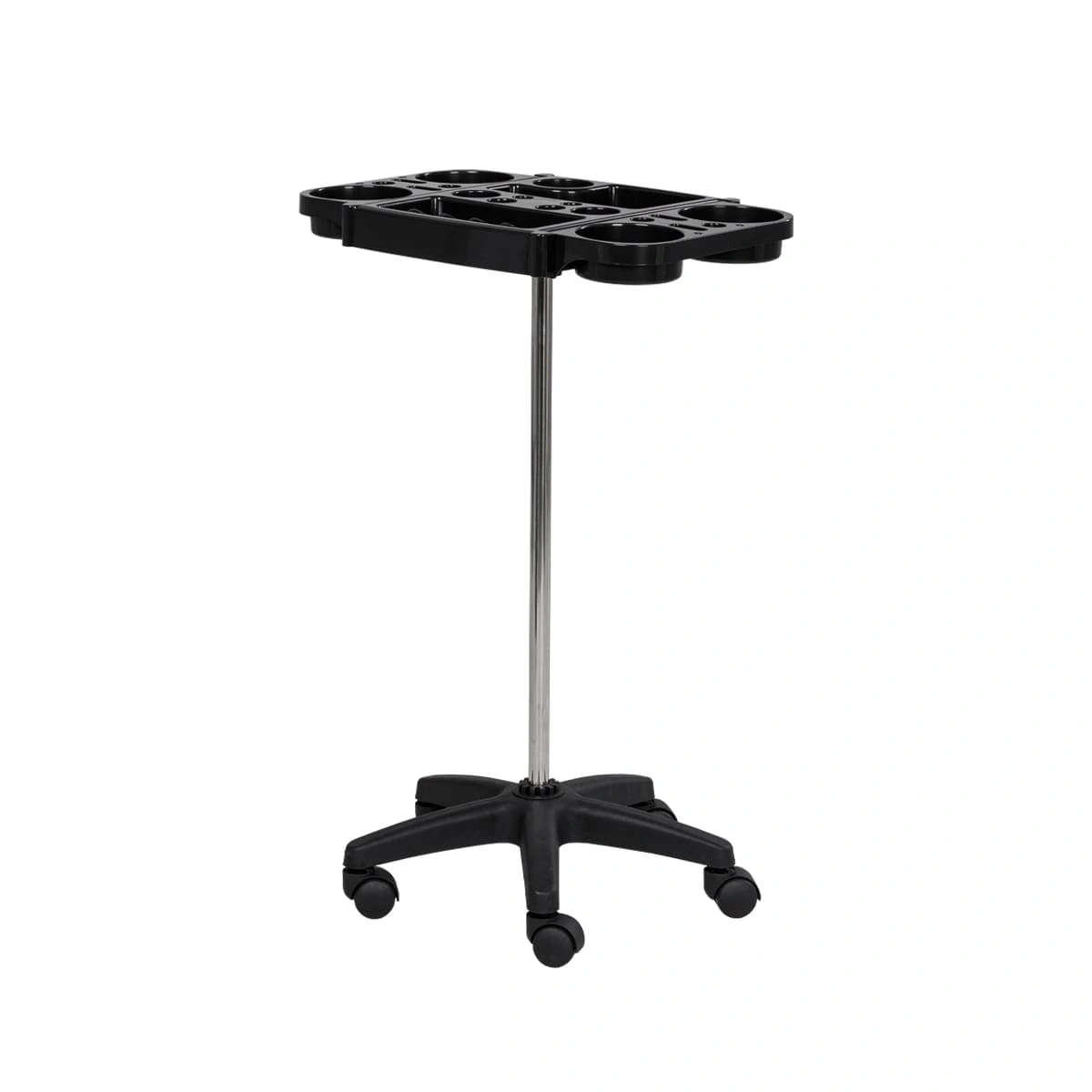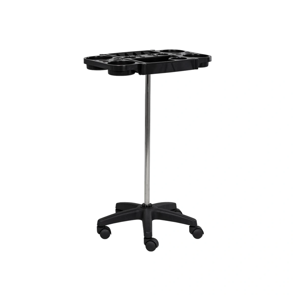 Каркас тележки изготовлен из прочного металла, благодаря колесикам ее легко перемещать. Специальное хромированное покрытие надёжно защитит от коррозии. Верхняя часть тележки – открытая полка со съёмными чашами, что весьма удобно не только для работы, но и после неё. Все инструменты и расходные материалы будут у мастера на виду. А после окрашивания, чаши легко моются.