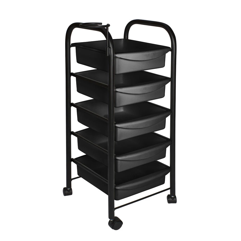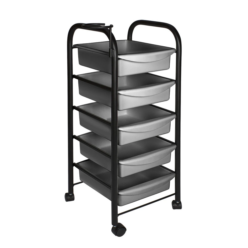 Тележка парикмахерская М-01 (черный цвет) – это профессиональное оборудование по доступной цене. С ее помощью можно сделать рабочее место мастера парикмахера более практичным, что в свою очередь положительно влияет на эффективность его работы. Такая тележка отлично подходит для хранения рабочих инструментов, приборов и расходных материалов. В комплектацию входит пять вместительных выдвижных ящиков из прочного пластика черного цвета. Этот материал легко чистится и не требует особого ухода.