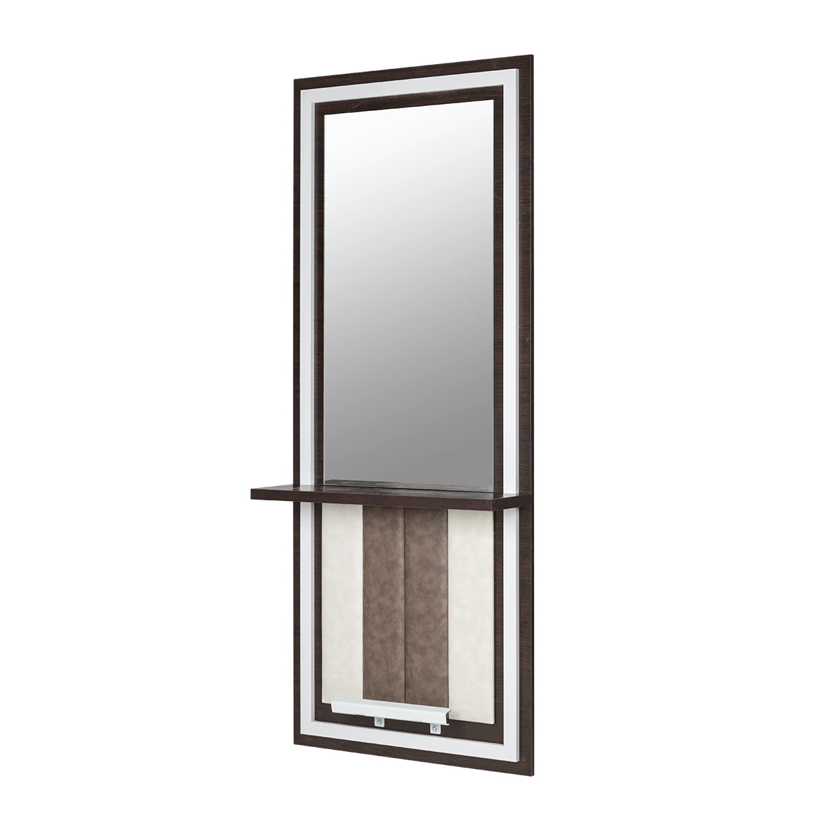Купить парикмахерское зеркало Диамант выгодно, так как можно сэкономить средства на приобретении подставки для ног. Функционал модели дополняет полка из ЛДСП в одной цветовой гамме с каркасом. На ней специалист сможет разместить косметические средства и аксессуары. Продуманная система монтажа позволяет быстро и легко установить зеркало на необходимой высоте. Его размеры: