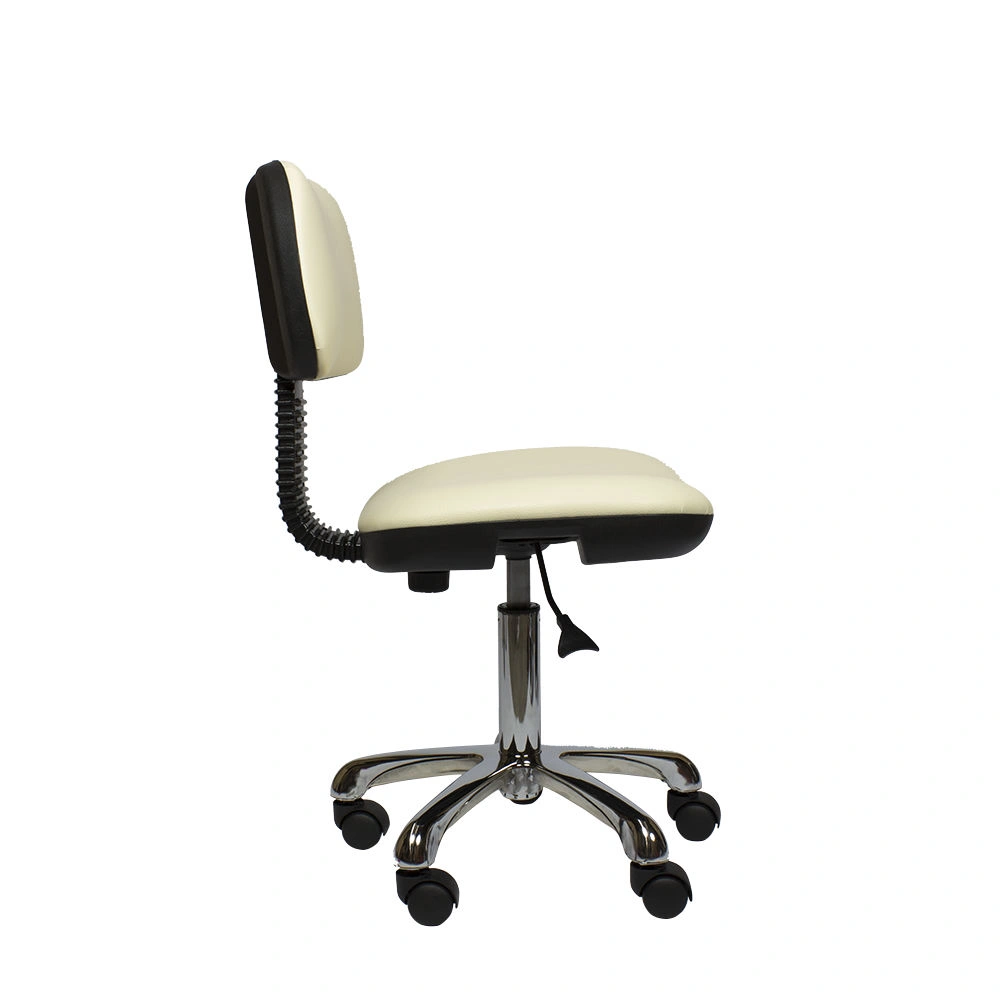 Во время работы мастеру по педикюру, как и другим специалистам beauty салонов, необходимо свободно перемещаться в рабочей зоне, поэтому стул должен быть мобильным. Для этого основание модели Сеньор комплектуется вращающимися пластиковыми колесами. Само пятилучье изготовлено из прочного металла с хромированным покрытием. Оно выдерживает рабочие нагрузки, делает стул устойчивым и выгодно подчеркивает его дизайн. Регулировка по высоте осуществляется с помощью надежного пневматического подъемника (газлифта). Купить стул мастера Сеньор с хромированным основанием можно для любого кабинета.