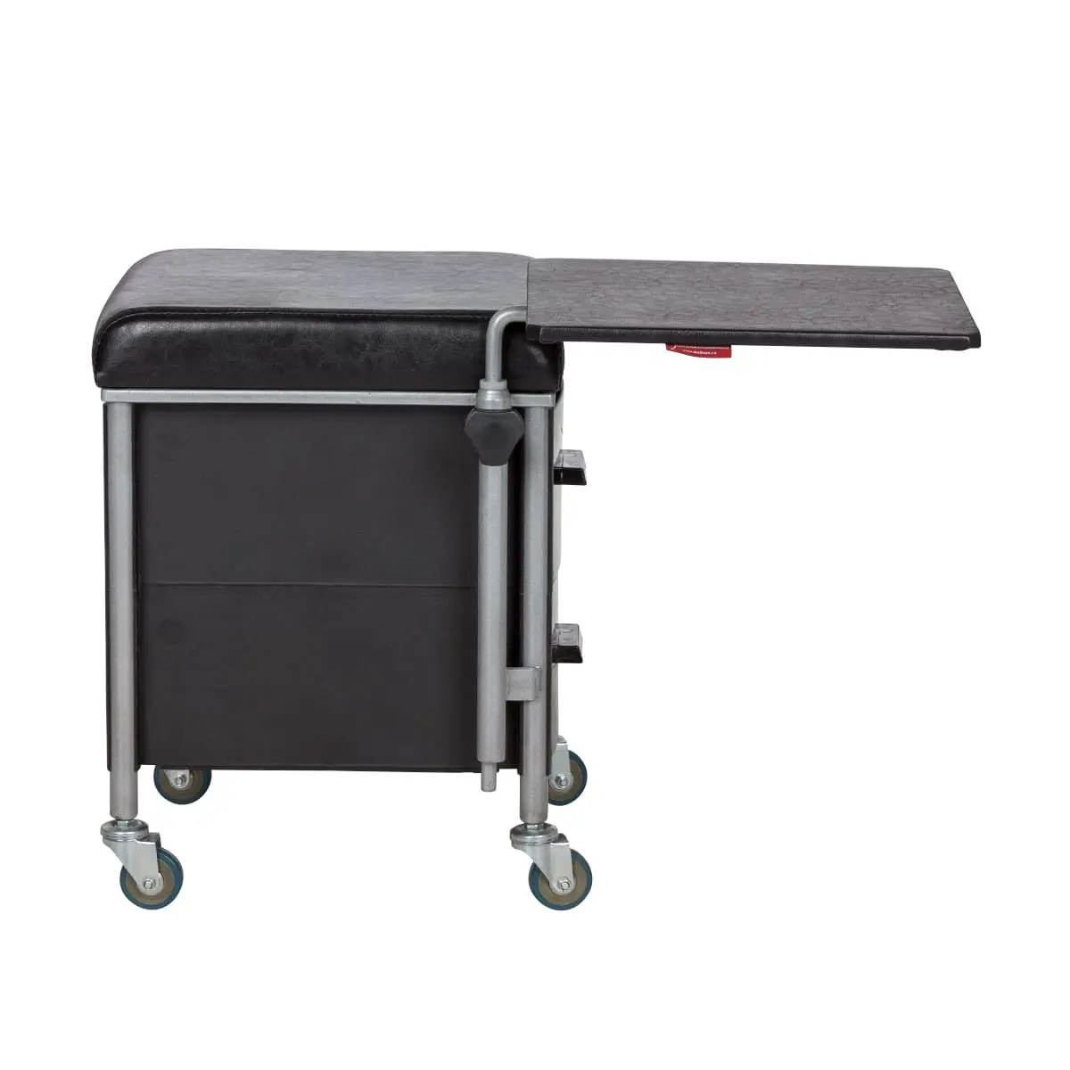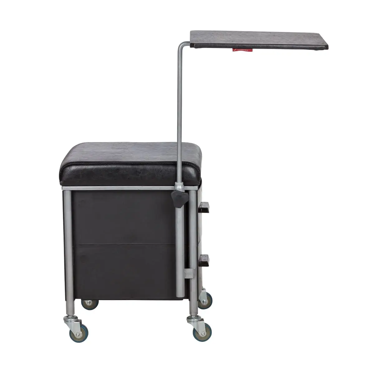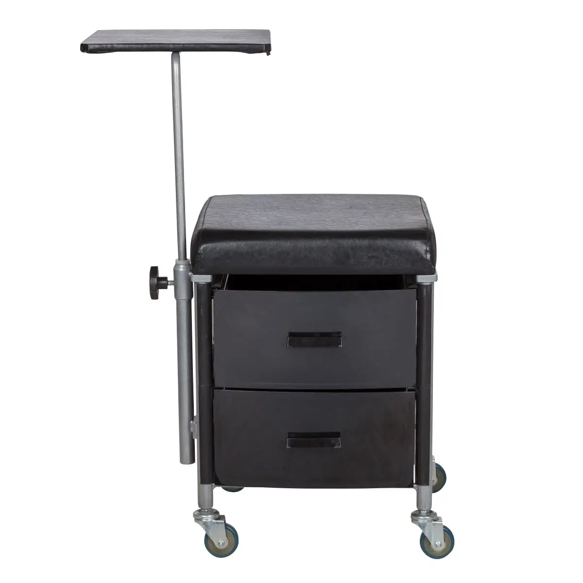На удобном пуфике мастер может с комфортом провести процедуры. Под сидением предусмотрены два вместительных ящика под необходимые инструменты мастера. Столешницу можно регулировать по высоте, чтобы подобрать оптимальную высоту для работы. Чтобы сэкономить время специалистов, стул для мастера педикюра оснащен поворотными колесами, которые позволят легко перемещаться, не вставая с места.