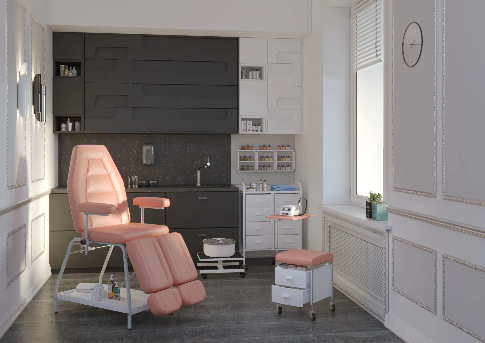 Для создания педикюрного оборудования использованы материалы высокого качества. Каркас выполнен из прочной стали с антикоррозийным покрытием. Ящики и боковые панели изготовлены из ударопрочного пластика. Сиденье обито мягкой фирменной экокожей. Наполнитель – упругий поролон. Верхний слой – обивка из фирменной экокожи. Надежный материал отлично переносит регулярную чистку моющими средствами и дезинфекцию.