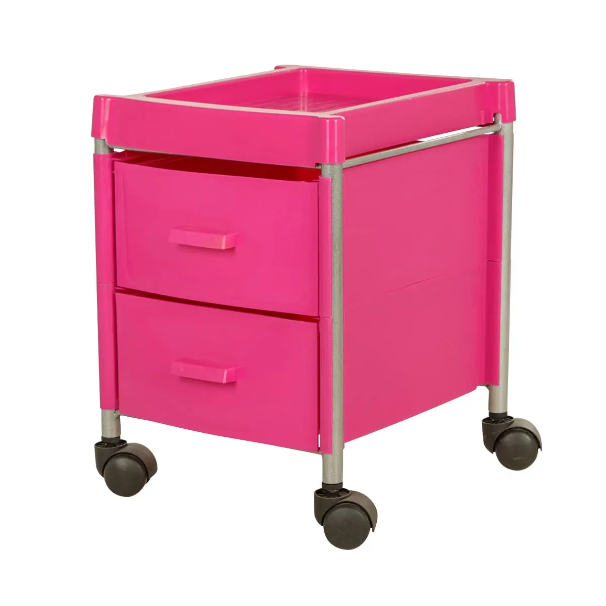 Тележка укомплектована двумя вместительными ящиками. Для инструментов, используемых во время рабочего процесса, на тележке предусмотрена крышка. Для быстрого и бесшумного перемещения, тележка для педикюра оснащена четырьмя поворотными колесами. Благодаря компактным размерам тележка может быть использована даже в небольшом кабинете.