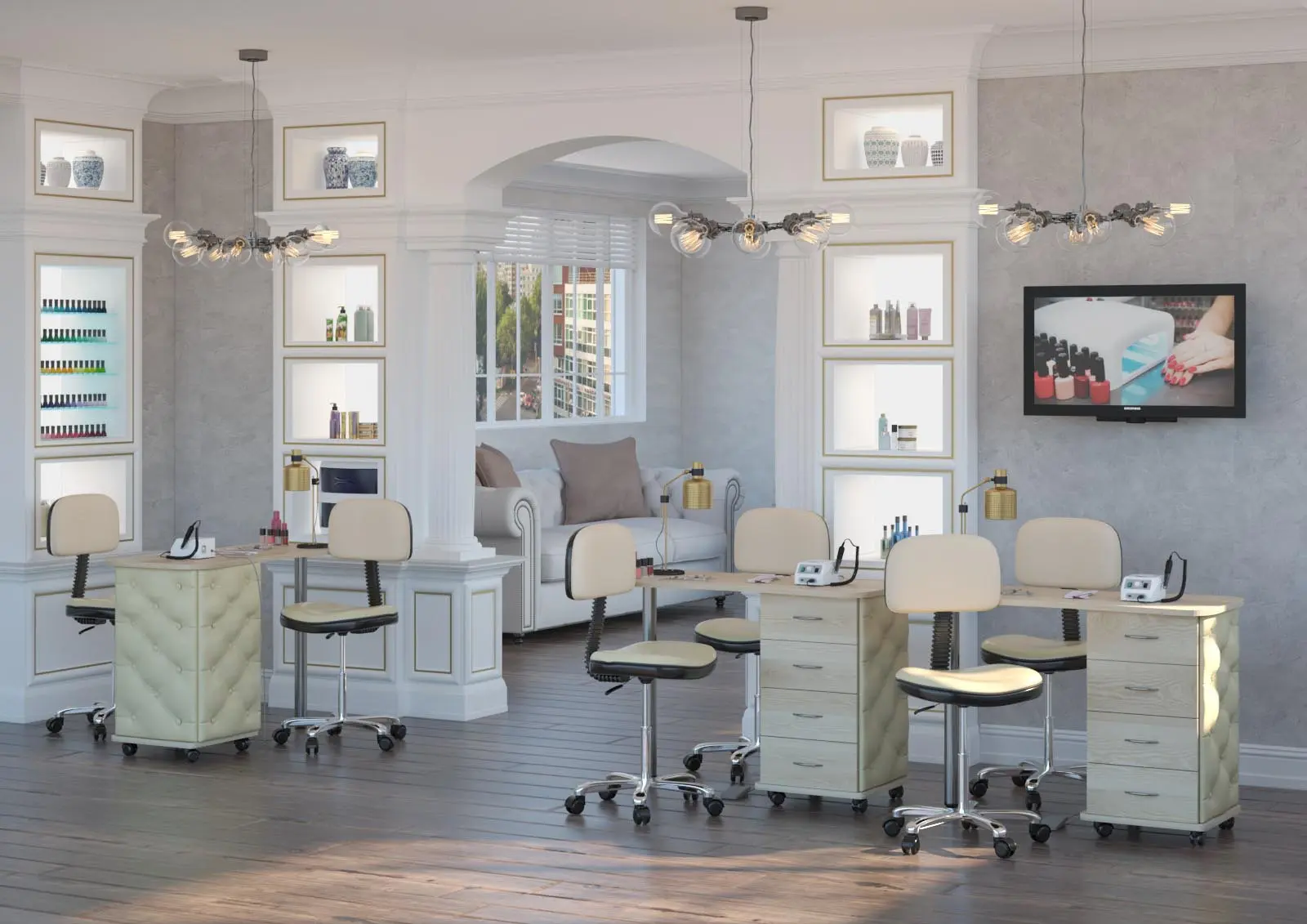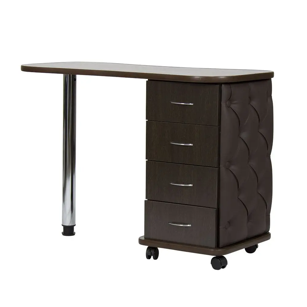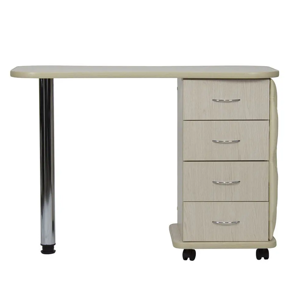 Комплектация: столешница, тумба, четыре выдвижных ящика, стальная ножка, колеса.