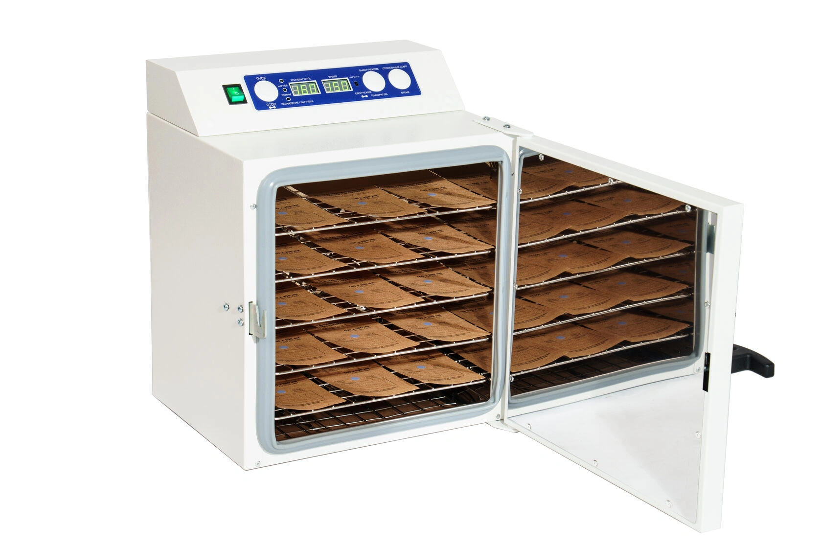 Стерилизатор "Ферропласт" при загруженной стерилизационной камере должен обеспечивать автоматическую поддержку температурных режимов в диапазоне от +85°С до +180°С и времени стерилизационной и дезинфекционной выдержки, а также пользовательского программируемого режима +50°С до +200°С, интервалом от 1 до 999 минут.