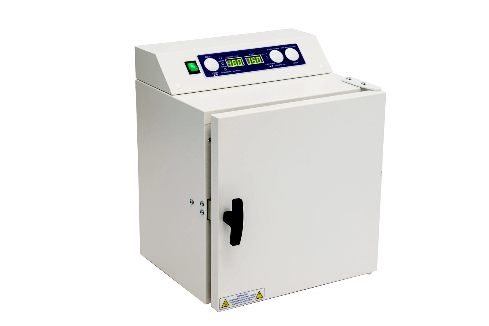 В стерилизаторе "Ферропласт" предусмотрена система звуковой и световой сигнализации режимов работы: